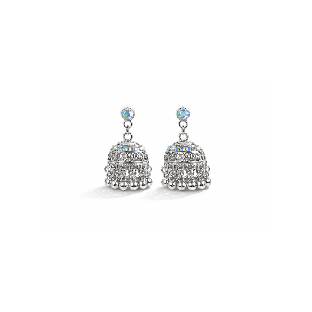 Silver Crystal Jhumka Earrings